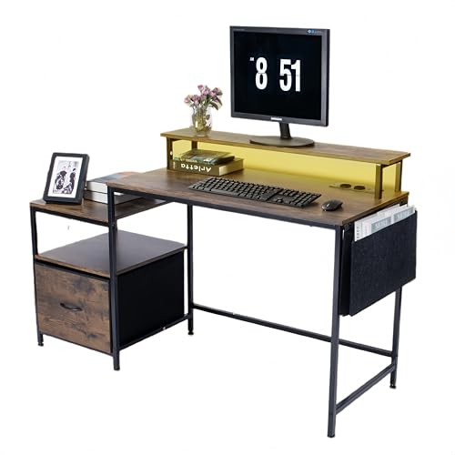 compact mais ultra-fonctionnel, le bureau gaming GOKHOMX combine design rustique et fonctionnalités modernes pour répondre aux besoins des joueurs. Son plateau de 100 x 50 cm, idéal pour un setup optimisé, intègre un support pour moniteur, une prise électrique et un éclairage LED discret. Le tiroir et les espaces de rangement permettent de garder les accessoires gaming organisés, tandis que la structure robuste en acier garantit une bonne stabilité. Parfait pour créer un espace de jeu ergonomique, même dans les pièces les plus restreintes.